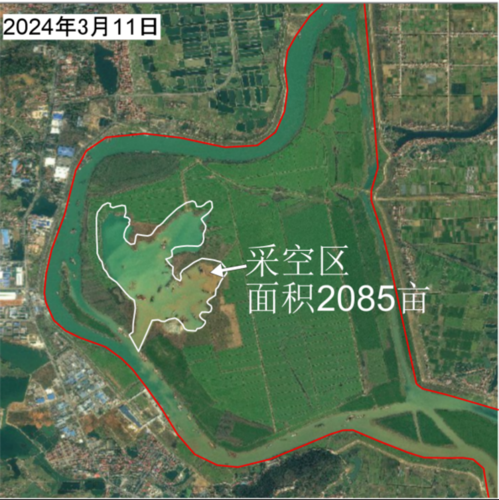 看护组查询卫星影像披露,澧水河口湿地保护区孟姜垸洲滩被大面积采挖。(看护组供图)