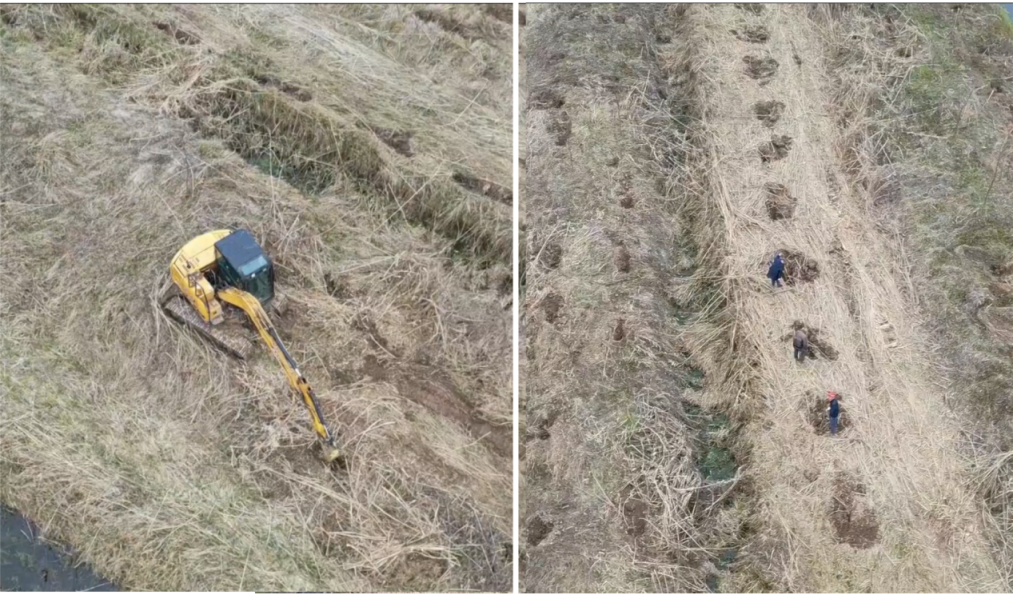 看护组暗查发现,益阳市南洞庭湖省级当然保护区西洋黑杨已清退区域正在挖坑种树。(看护组供图)
